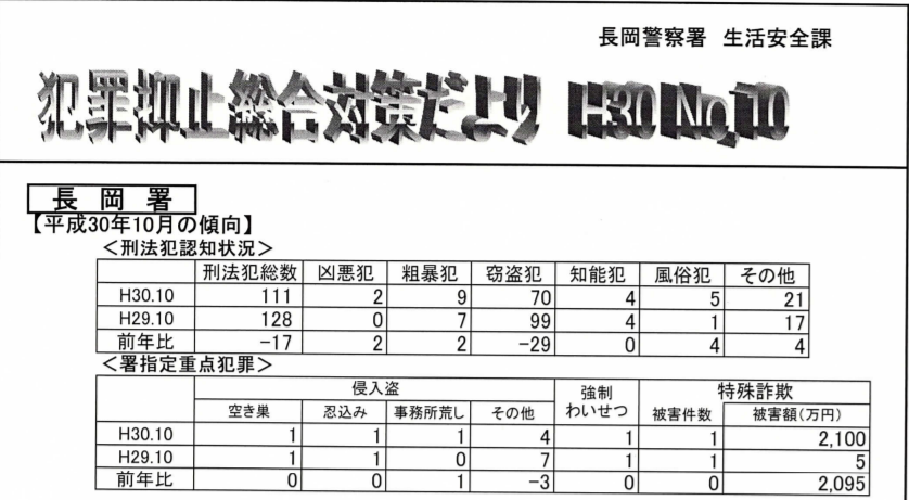長岡署管内では、昨年比べ刑法犯総数は減っているものの特殊詐欺被害額は、大幅に高額になってきています。被害に遭わないために「どうしよう」と迷ったら一人で悩まずに相談しましょう。参考資料を掲載します。
