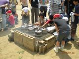 スマイル学年の学年行事「かれー作り」を行いました。グラウンドでご飯を炊く